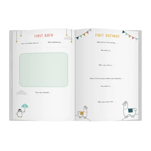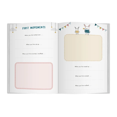 • Pages dedicated to special moments with the new baby, including precious firsts like first smile