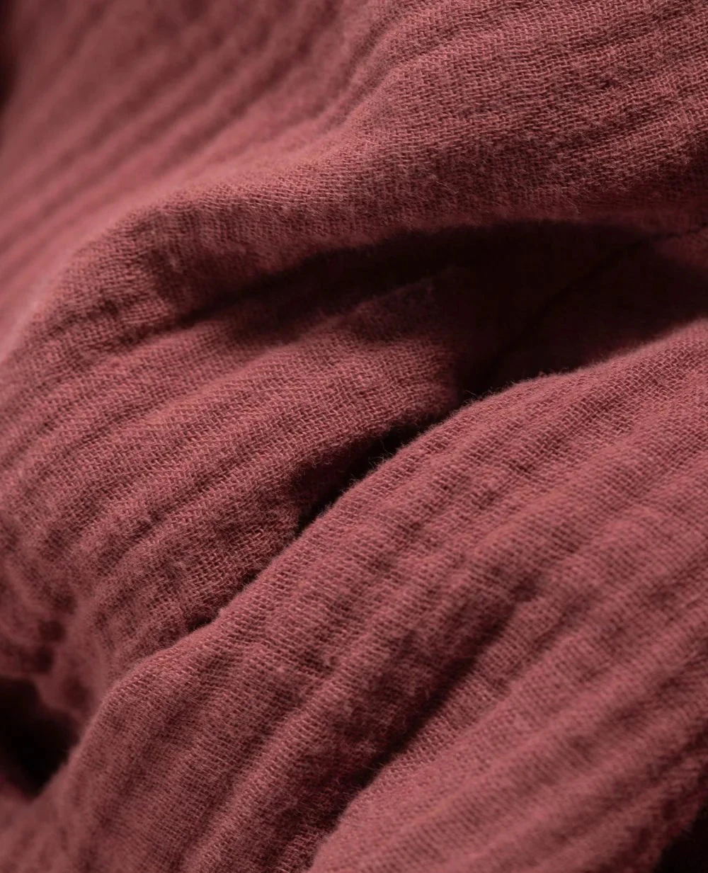 The plum Canyon pregnancy and nursing suit is made of cotton gauze and will accompany you throughout your pregnancy and beyond. It will be your ally during breastfeeding thanks to its zip opening under the chest. The zip with two sliders allows you to easily access the breast you want to breastfeed with.