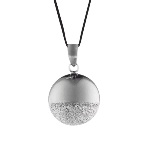 This maternity bola made of silver is decorated with Swarovski crystals. Swarovski crystals bring a touch of glamor to the maternity bola.