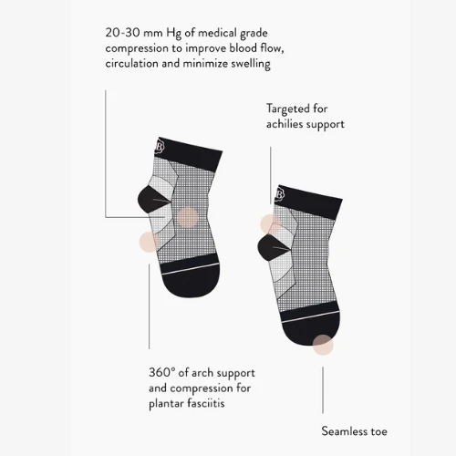 - compression grade of 20-30 mm Hg to improve blood flow & circulation, minimizing swelling and fatigue