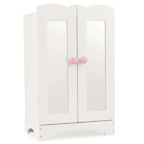 The KidKraft Lil’ Doll Armoire is a fun and elegant way for kids to keep their doll clothes organized. It’s the perfect size for 18-inch dolls, with classic scalloped edges and six wooden hangers, this is a pretty addition to a doll’s room. The twin mirrors are made with safe and sturdy plastic and the wood construction means this little armoire will last for years.