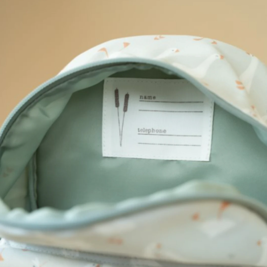 This cute Little Goose backpack is ideal for school adventures or a family visit. It’s eco-friendly and made of 10 recycled pet bottles. The shoulder straps are adjustable and can be supported by fastening the chest strap. On the inside you can find two elastic bands to hold water bottles so they won’t spill. There is also a special compartment to protect your kid’s artwork and a label to write down his/her name and address.