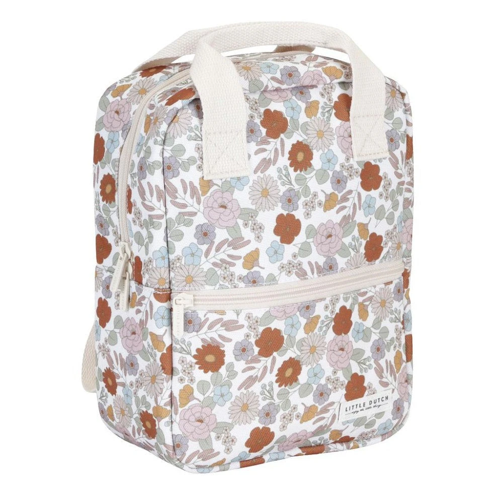 Your child will be ready for any adventure with this beautiful backpack! The backpack is not only practical and beautiful, but also environmentally friendly: it is made from recycled PET bottles and designed for sustainable use. The combination of the beautiful Little Flowers design and the beige shoulder straps and handles give the backpack a vintage look. The main compartment has an elastic band to keep a bottle in place, and a label to write your child’s name on.