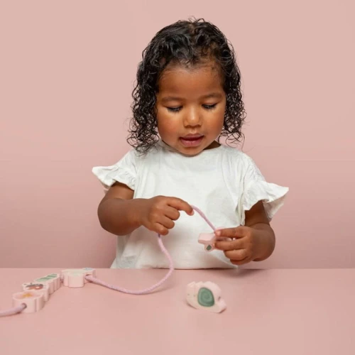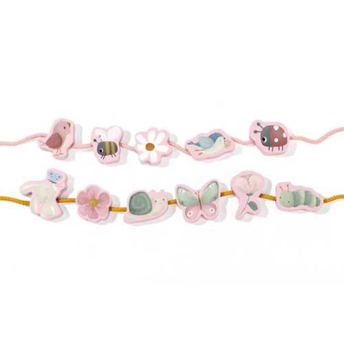 Let’s string a beautiful necklace and create a story of Flowers & Butterflies! What is little bird Abby up to? Can you help her find some flowers for her little nest? Will she meet her friends along the way? Or will Lilly the butterfly go first on the string? Use your imagination to tell an enchanting story by lacing these lovely beads one by one. This set of lacing beads comes with one string tipped by aglets for easy lacing and 12 wooden beads with the beautiful illustrations of the Flowers & Butterflies collection. Toddlers will love lacing the beads and using their fantasy to tell the most vivid stories. Playing with the lacing beads promotes fine motor skills, hand-eye coordination and creativity.