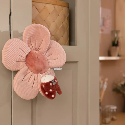 Off to dreamland. Make sure to include this flower-shaped music box when you set up the nursery. It will help your baby to calm down and fall asleep. Plus, it develops your baby’s imagination and adds to the senses of sight and hearing. Pull down the ladybug and a soothing melody starts playing. Hang the music box above everything from crib to changing table.