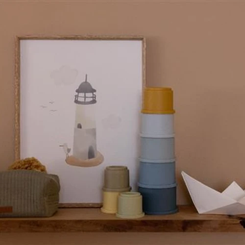1,2,3 how high will the tower be?! This set of cups challenges your toddler to stack them one on top of the other. How great the joy will be when the tower is completed! And how fun it is to knock the tower over again. Hours of fun guaranteed. Rendered in four different colours, they are sure to entertain your little one. The 8 stacking cups have a number on the top and easily fit each other to avoid the tower from falling. Your little one will learn about numbers and develop fine motor skills. Stack and create the tower on a playpen, on the floor or in the bathtub or sandbox. Thanks to the versatile material it can be used anywhere. Place the little cups inside the larger ones for easy storage.