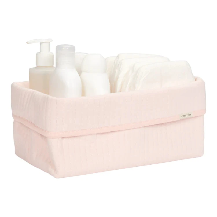 No more nappies, tubes or bottles lying around: keep your changing table neat and organised with this large storage basket from Little Dutch! The Little Dutch storage basket has a beautiful design and enough space to store all the items you need every day to care for your baby. A wonderful accessory to have in your child’s room. This one from the Pure Soft collection has a beautiful soft pink colour.Â