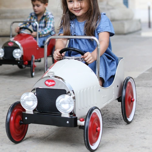 A vintage toy pedal car “collectible” for kids! Inspired by the ’30s, this chic “clunker” will surely charm kids and adults alike while on new and exciting adventures.