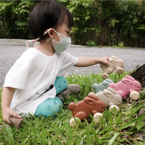 Hop alongside this happy bunny! With a soft touch and an energetic design, children can easily grab and play with these push-along bunnies and incorporate them into imaginative play scenarios. Through play, kids also develop fine motor skills and gain exposure to cause-and-effect relationship.