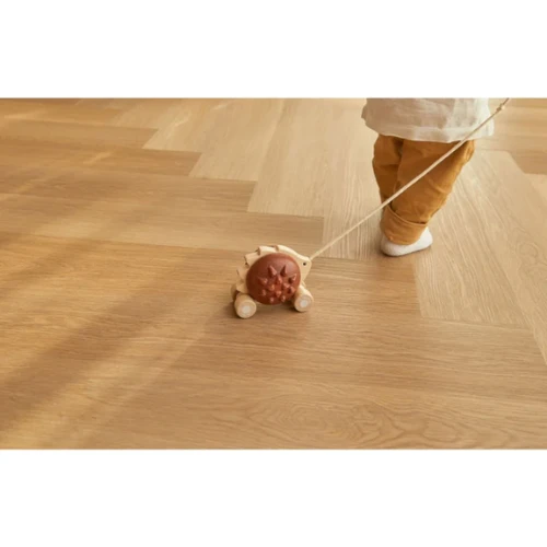 The Pull-Along Hedgehog is ready to accompany your little one everywhere they go! When pulled, the hedgehog will let out a chime as a reminder that it’s not far behind. Available in two colors, this toy encourages children to develop gross motor skills, balance, and coordination.