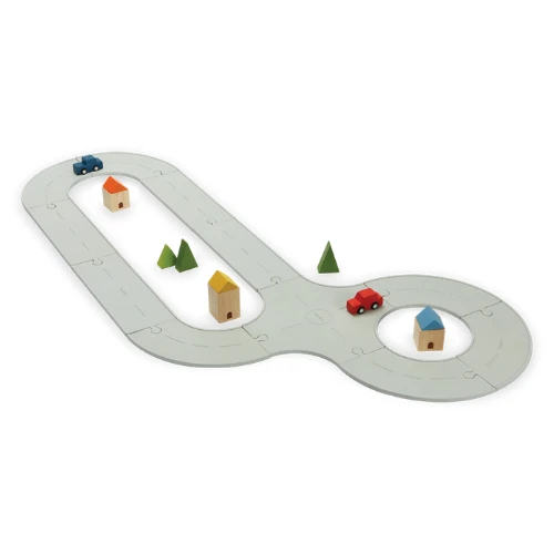 Pave your own path and go on a journey with the Rubber Road & Rail set! The flexibility of the rubber allows kids to create unique city infrastructure for play. This set comes complete with 11 pieces of two-sided rubber tracks, 2 cars, 3 buildings, and 3 bushes. (19 pieces in total)