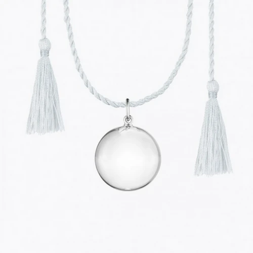 The sweet chime sound of this maternity necklace will bring calm and harmony to future mothers and their babies. Its silver pendant is suspended at the end of a twisted silk cord and nicely finished with soft and delicate tassels. After birth, continue to wear your necklace to gently rock your baby who will calm down by recognising its delicate melody.