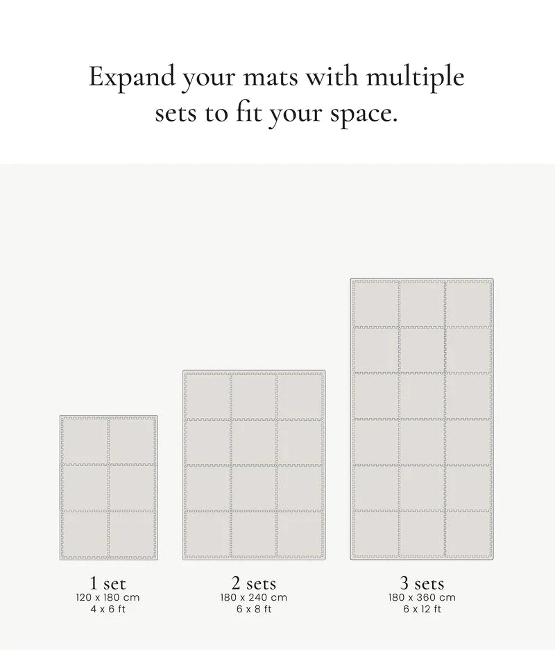 - One assembled mat is sized at 120x180cm/4x6ft but the possibilities for sizing are endless – simply attach multiple tiles together to find a size that fits your space.