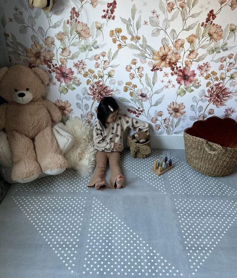 - Toddlekind’s playmats consist of six 60cm/2ft tiles with edging bonders to give a seamless rug-like look.