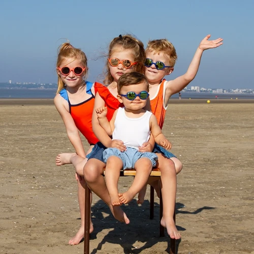 The RoZZ sunglasses are ideal for children between 1 and 4 years old. Their round shape will give your little ones a slightly retro look. Their hinge-free UNBREAKABLE frame is perfect for all activities and, because they’re available in 2 sizes, they’ll fit all faces for kids in this age group. The oversize category-3 lenses ensure optimum protection from sunlight. This category of lenses, less dark but filtering out 100% of UV light, makes them more comfortable for this age group as they learn to walk.