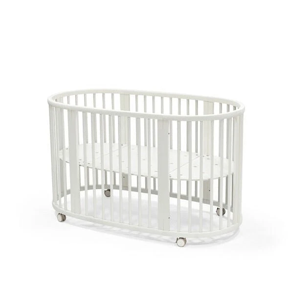 Your baby’s crib is the heart of your nursery. It should be beautiful, functional and above all, safe and soothing for your little one. Made of solid European beech wood, with adjustable height, Stokke® Sleepi™ accommodates the changing needs of your growing child. Soft oval design cocoons your baby offering comfort and familiarity for restful sleep and the sweetest of dreams. Stokke® Sleepi™ Bed can be used from birth to 5 years so your child can enjoy their bed throughout childhood. Adjust the height position of the mattress as your child gets bigger and reaches the curious climbing stage. Once your child is old enough to get in and out of the bed on their own, you can remove the wheels and one side of the bed for easy access. This will boost your child’s independence as well. The Stokke® Sleepi™ concept has been developed with sound sleep and safety in mind. It is available with a new firm and breathable Sleepi™ mattress which exceeds the highest safety standards (sold separately). Accessorize with the breathable mesh liner and high-quality textiles.