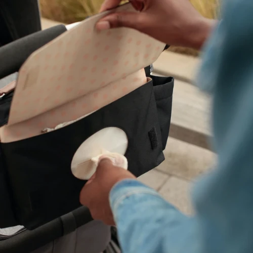 - Easy access wipes pocket